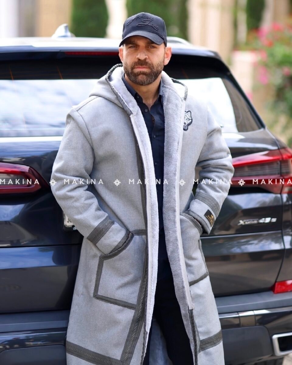 This luxury men’s coat is designed to combine classic sophistication with practical performance
