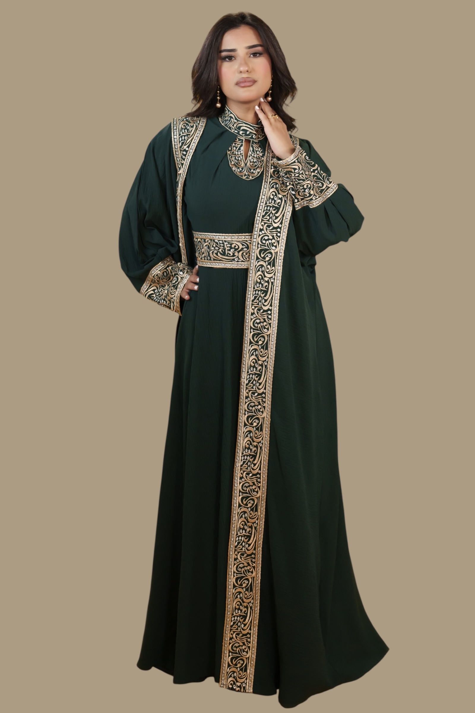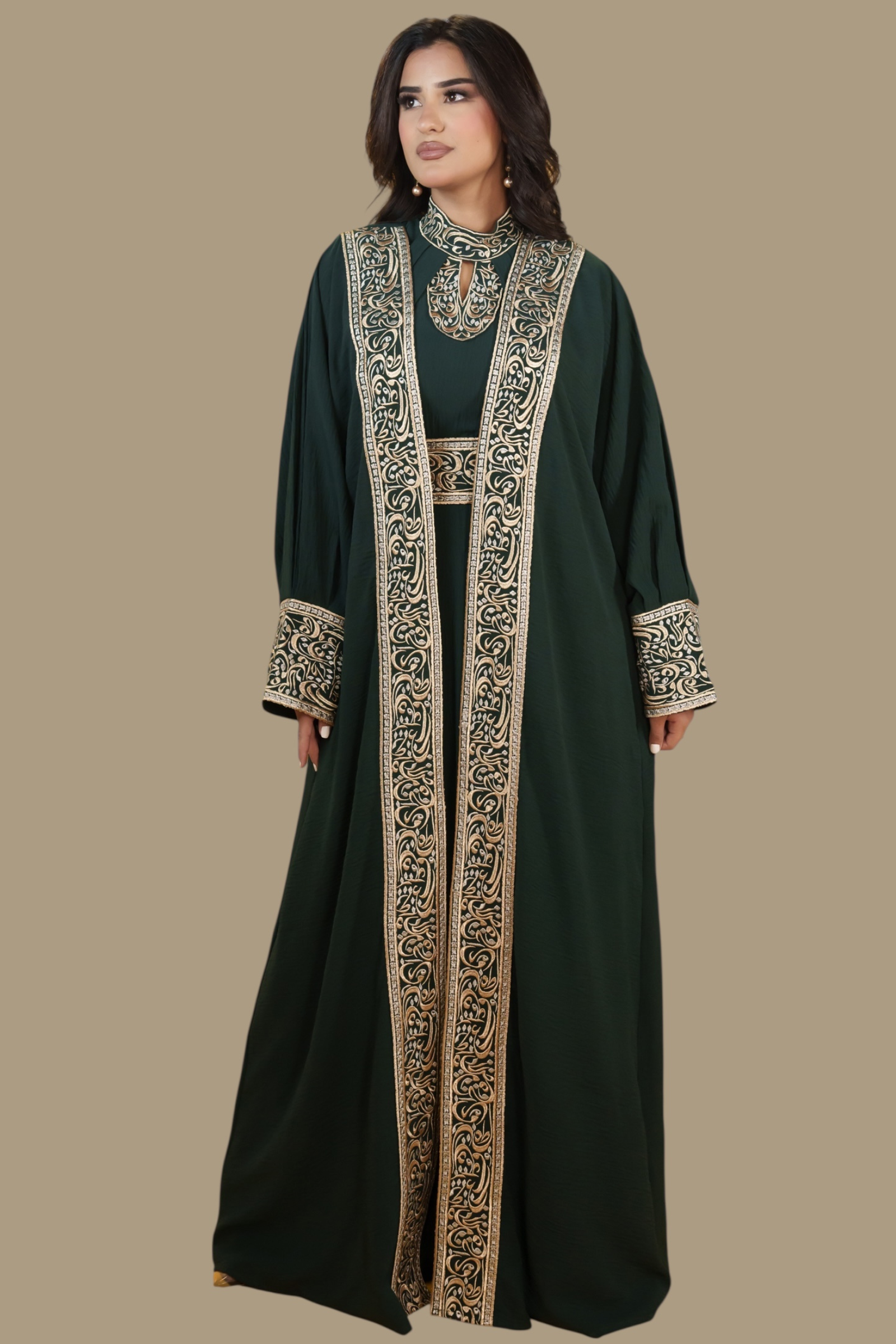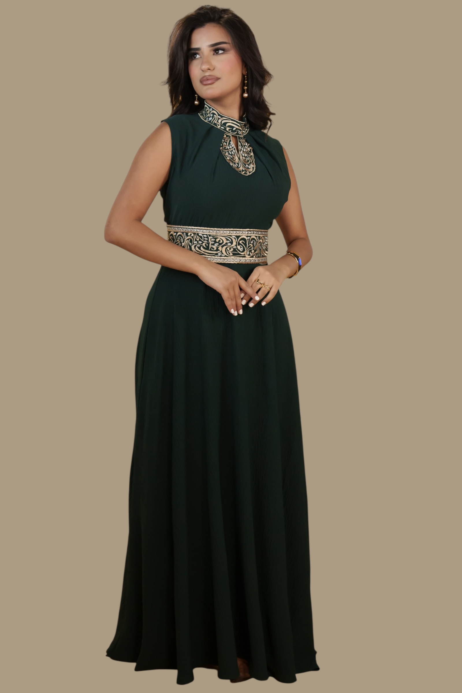 - بشت كتان متطور مزين بخيوط معدنية إسبانية رفيعة، يجمع بين الطراز التراثي والأناقة العصرية