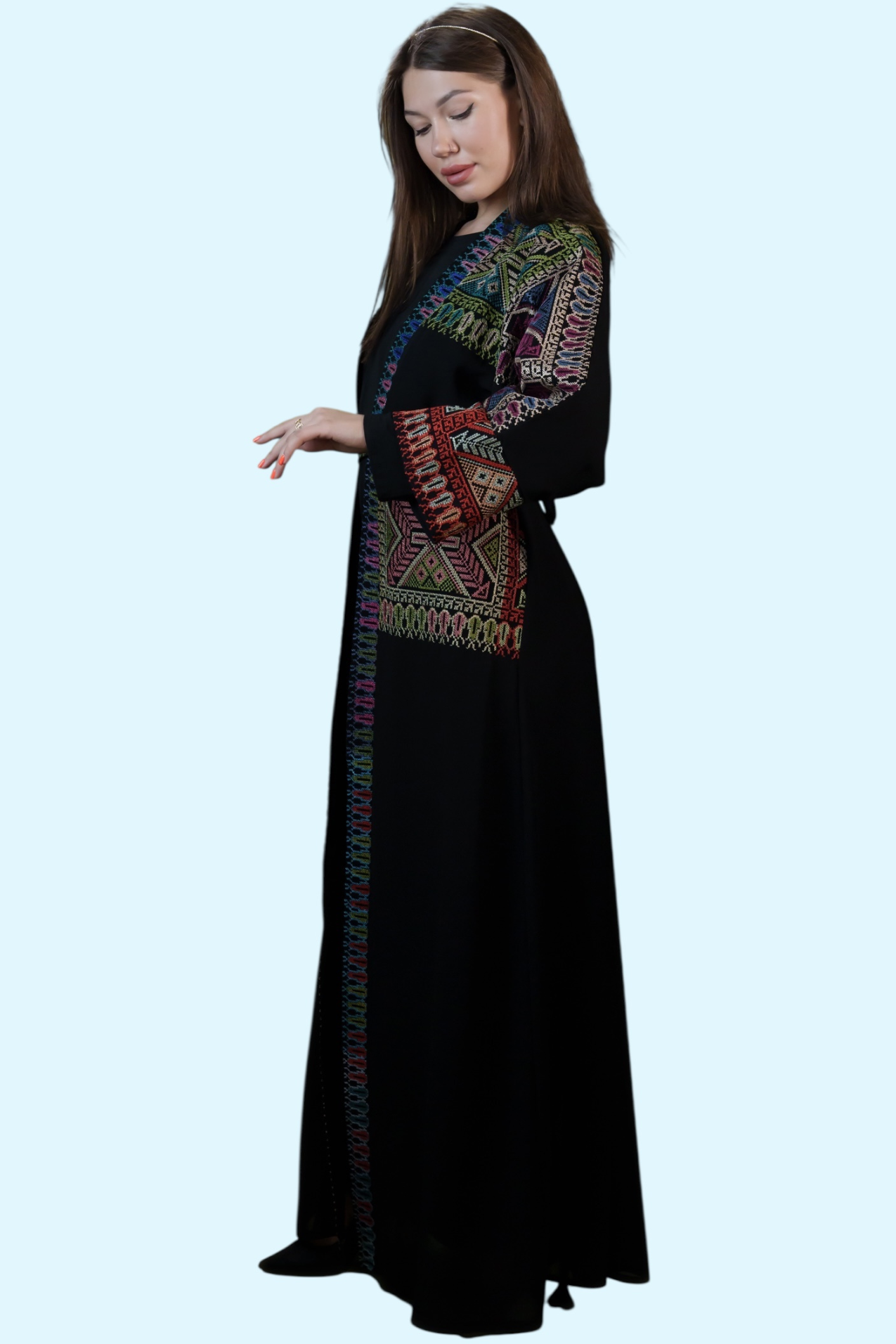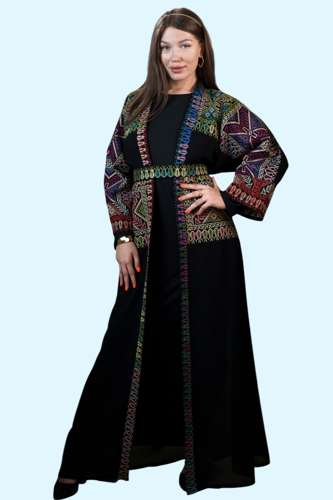 - بشت مطرز بإتقان على الطراز الشعبي التقليدي باستخدام خيوط حرير فاخرة على قماش كريب ناعم. تجمع هذه القطعة الأنيقة بين التراث الثقافي والحرفية الراقية، مثالية للمناسبات الخاصة.
