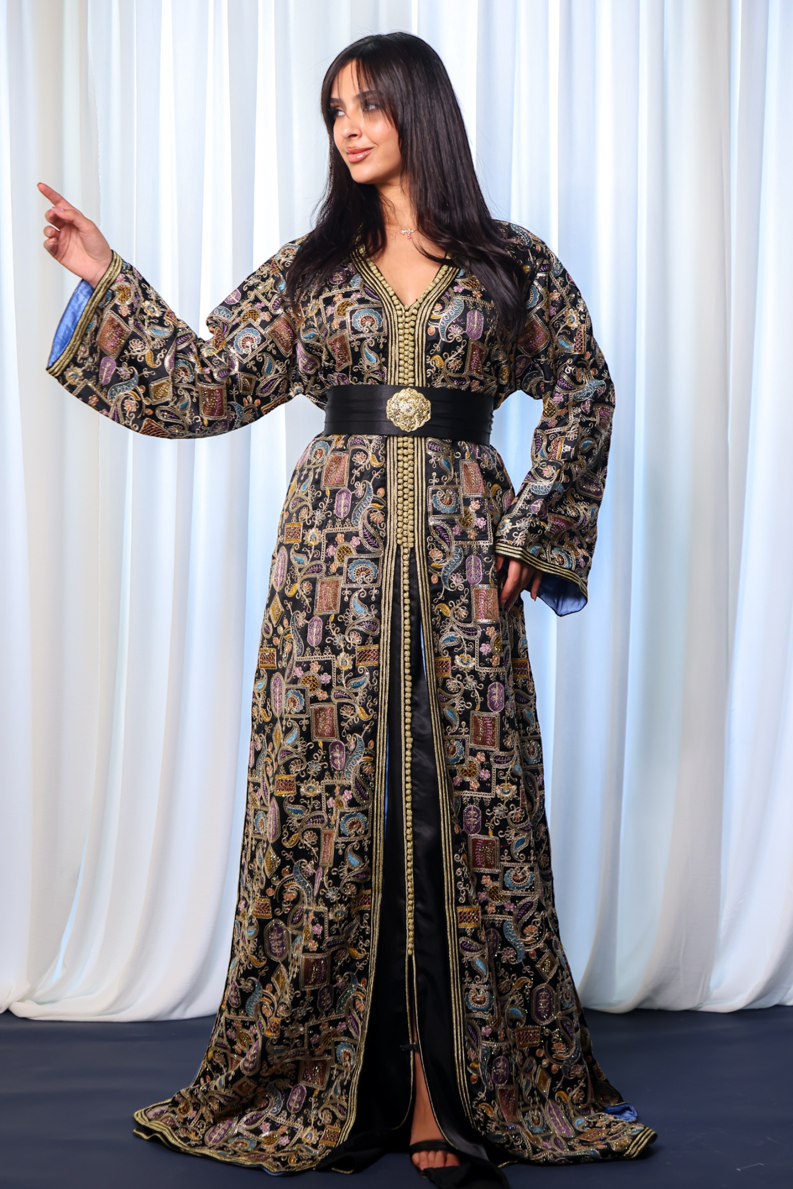 قفا مغربي قماش قطعتين بالشكطان يدويا على الحرير و الرومير