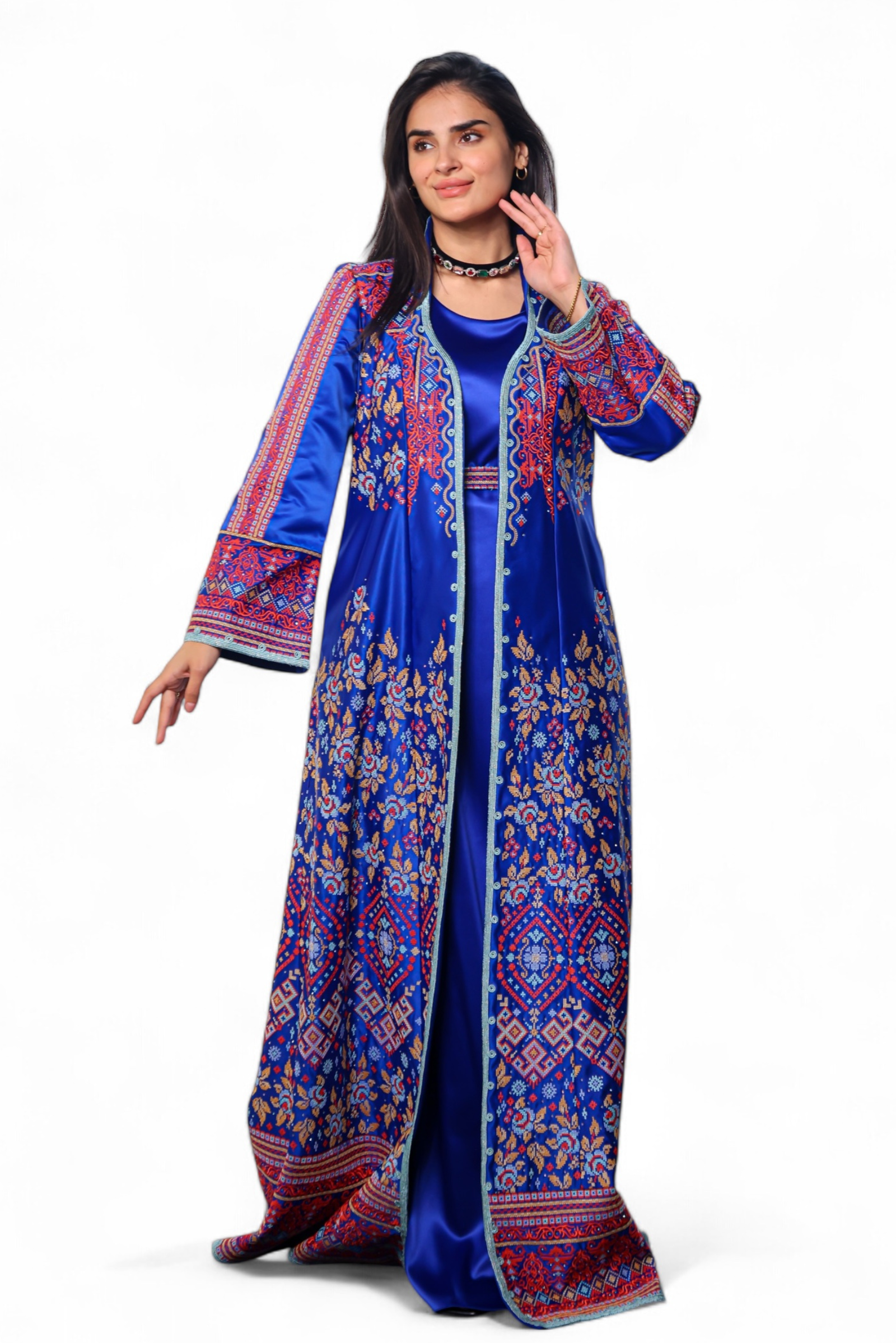 قفطان قطعتين مطرز بالتطريز الفلاحي على الروزمير