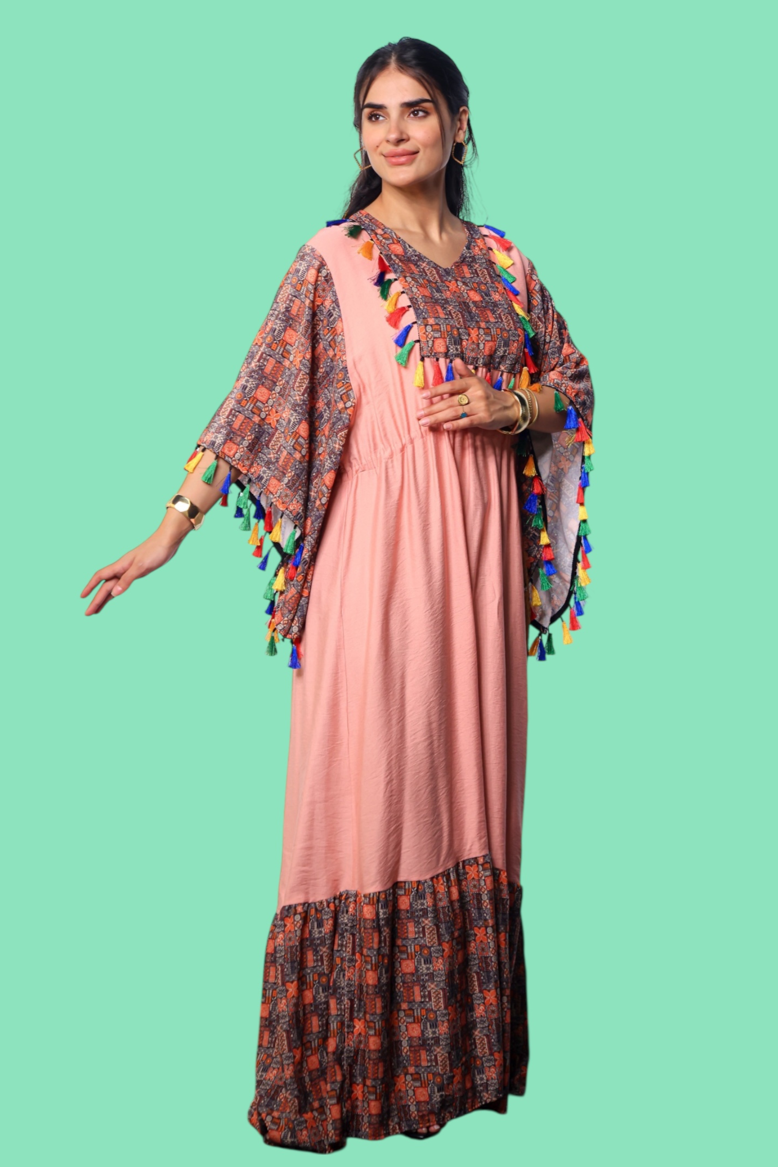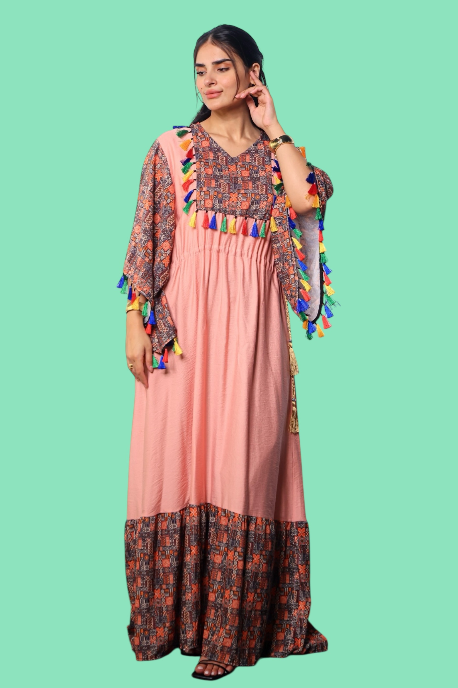 - فستان مذهل مزين بتطريز شعبي أصيل، يبرز مهارة الصناعة التقليدية التي تحتفي بالتراث الثقافي بأناقة خالدة.