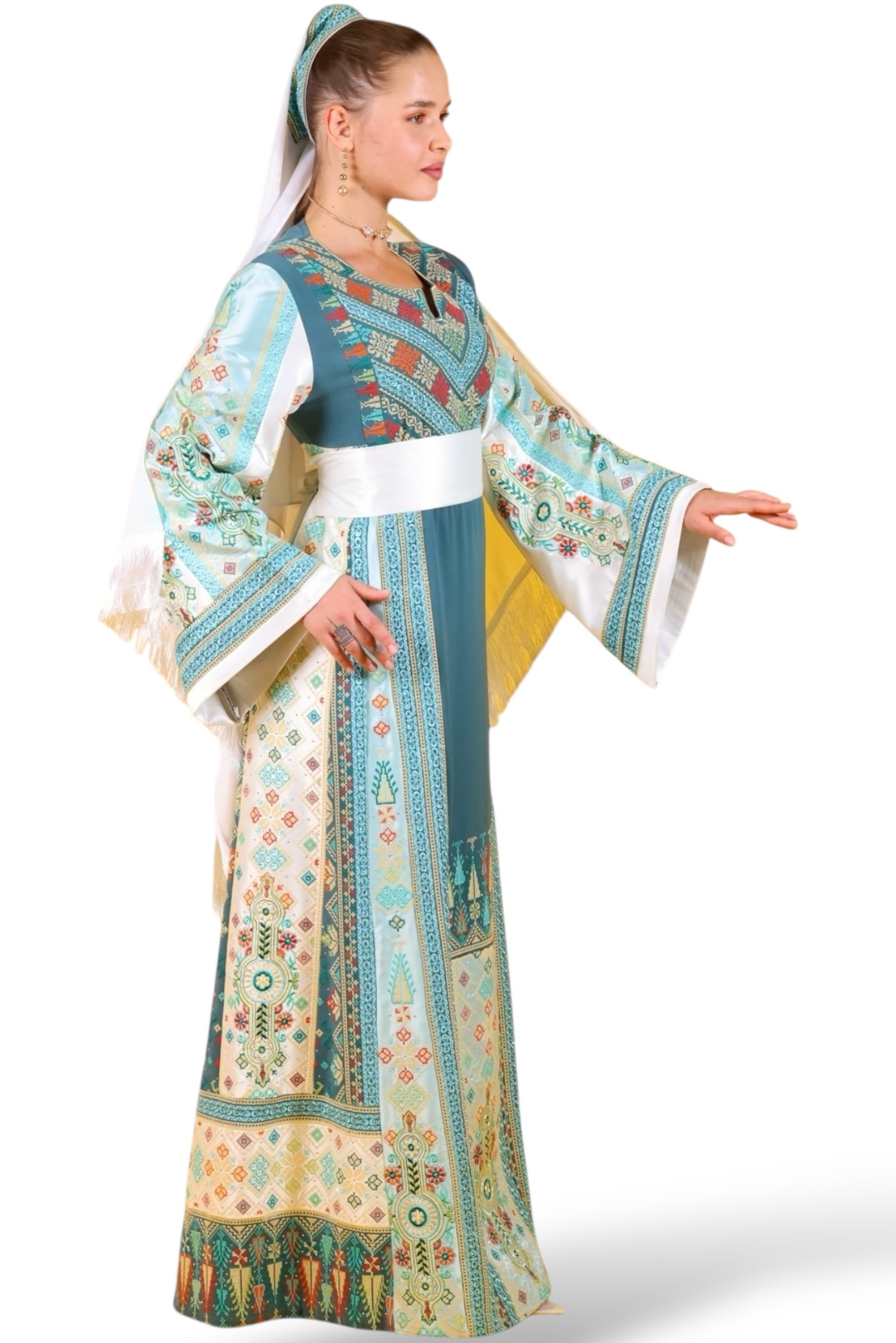 ثوب مودرن مصنوع من قماش المعالج الروسي نخب الاول والجيسكا مطرز على الطارة مصنوع يدويًا