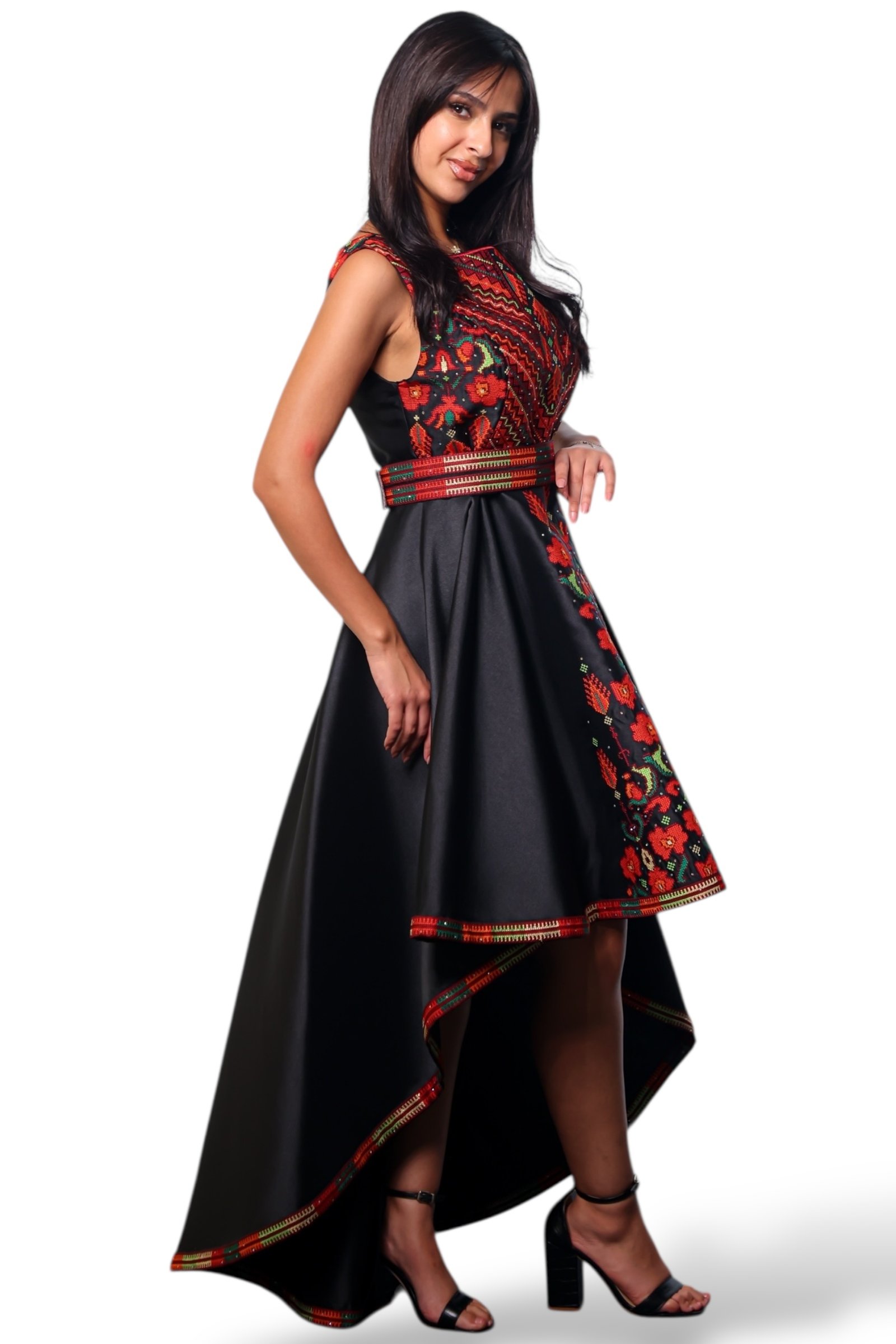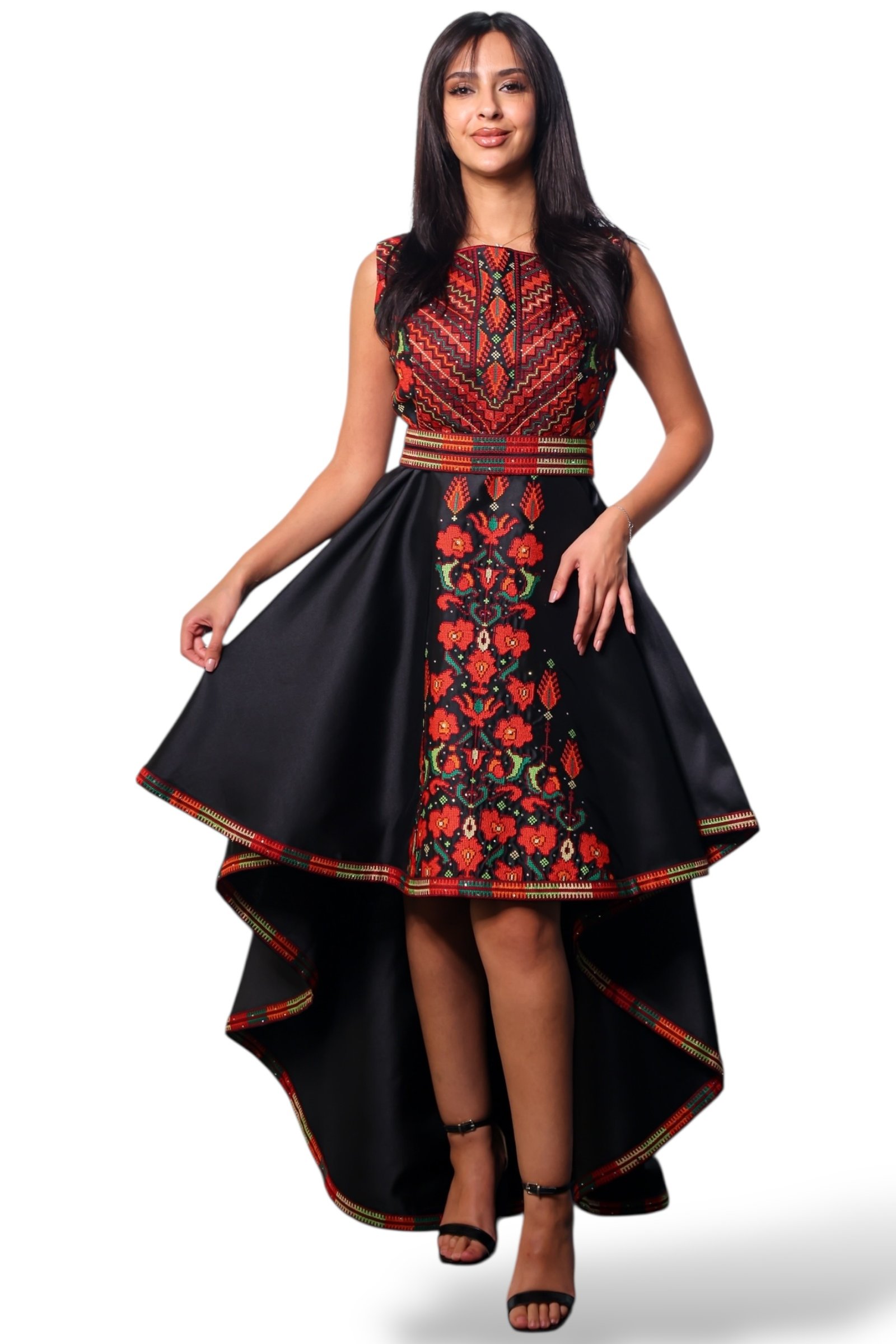• Short Fallahi Dress with Damask Rose Embroidery