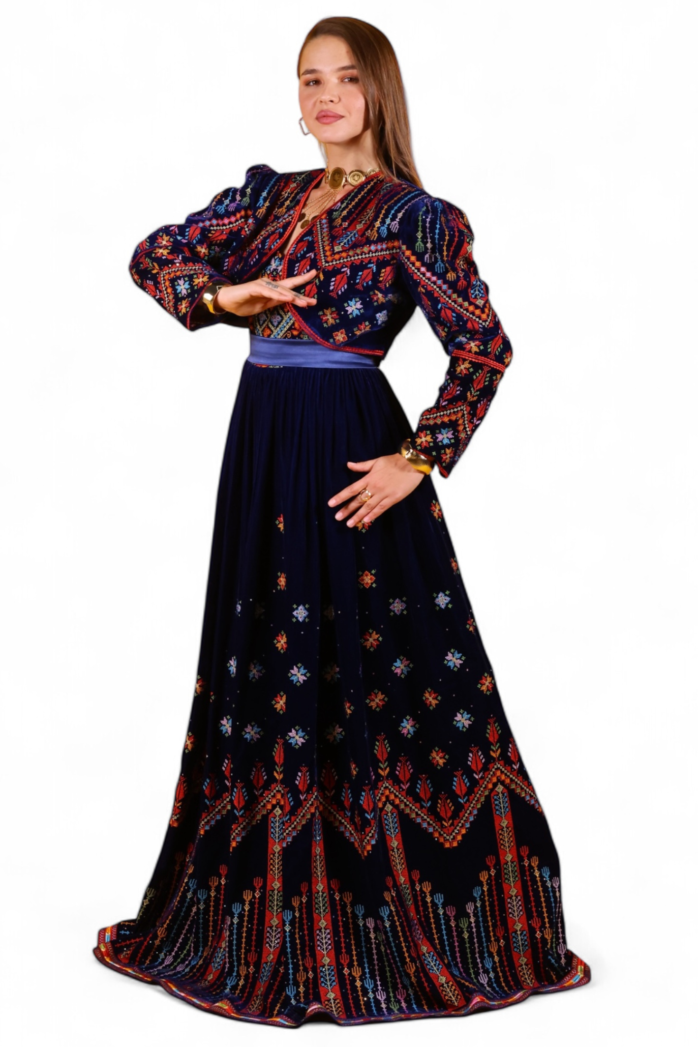 • A refined two-piece thobe crafted from smooth silk fabric, featuring intricate embroidery made on a hand-operated Tara machine. A blend of comfort and artisanal detail.