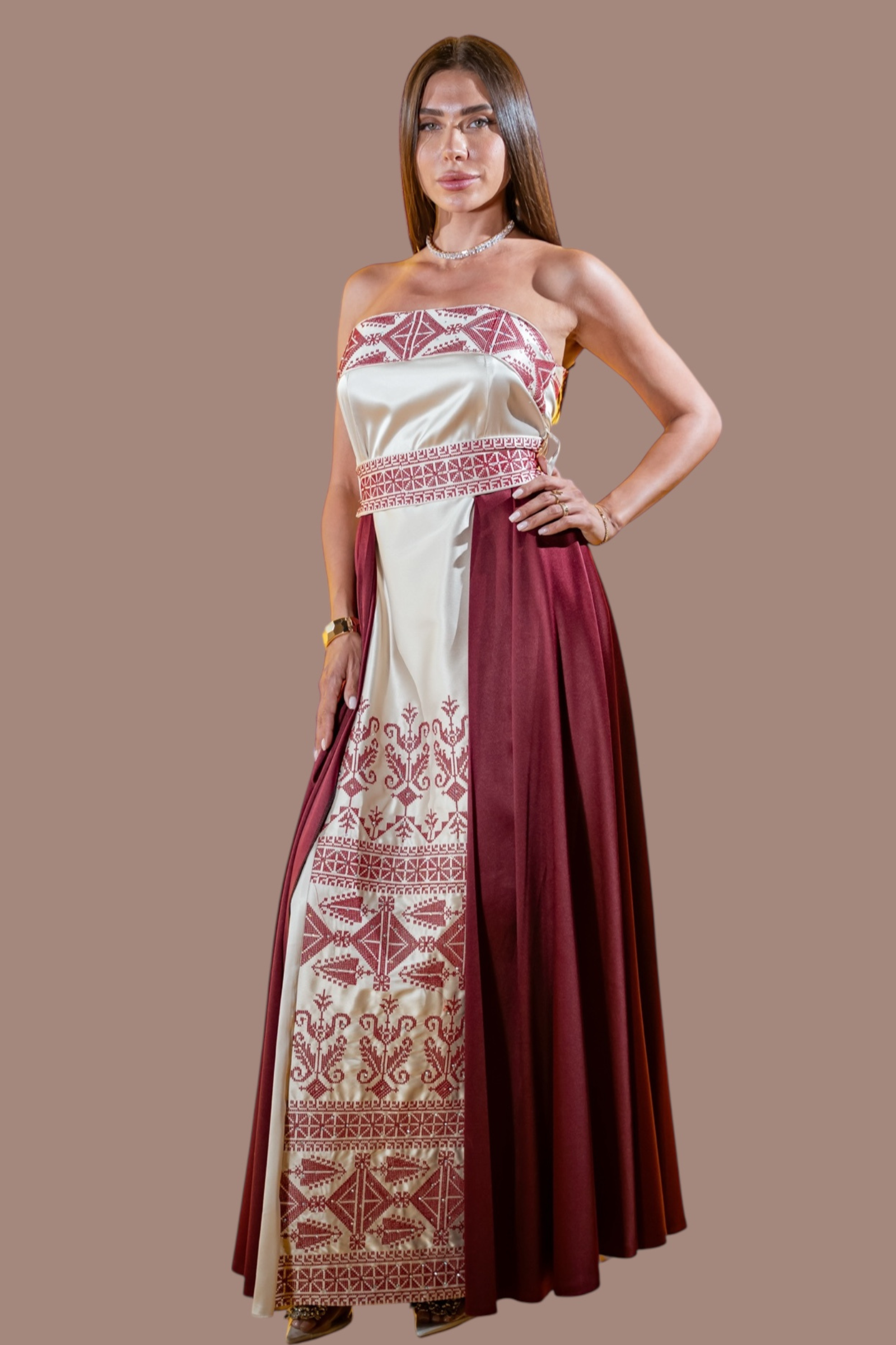 - A unique backless rural-style dress, elegantly embroidered with fine French silk thread—merging traditional inspiration with modern flair.