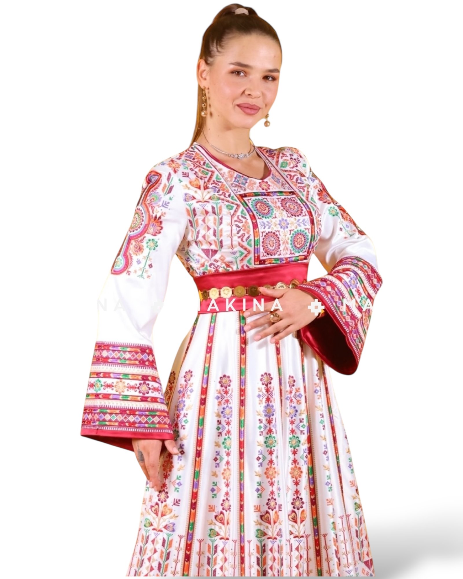ثوب مودرن مصنوع من قماش الجيسكا و مطرز بخيط الحرير