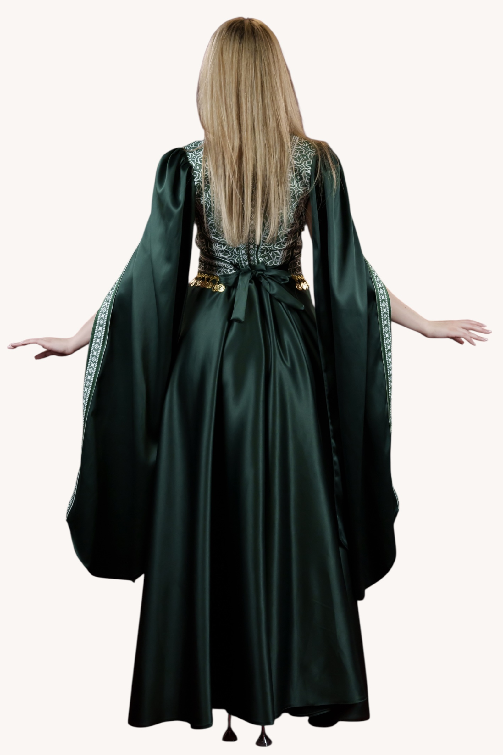 - A stylish modern dress featuring a Turkish cut and detailed with authentic folk embroidery crafted using hand-hoop machine techniques on luxurious Rosemary fabric. This piece perfectly blends cultural heritage with contemporary fashion for elegant occasions.