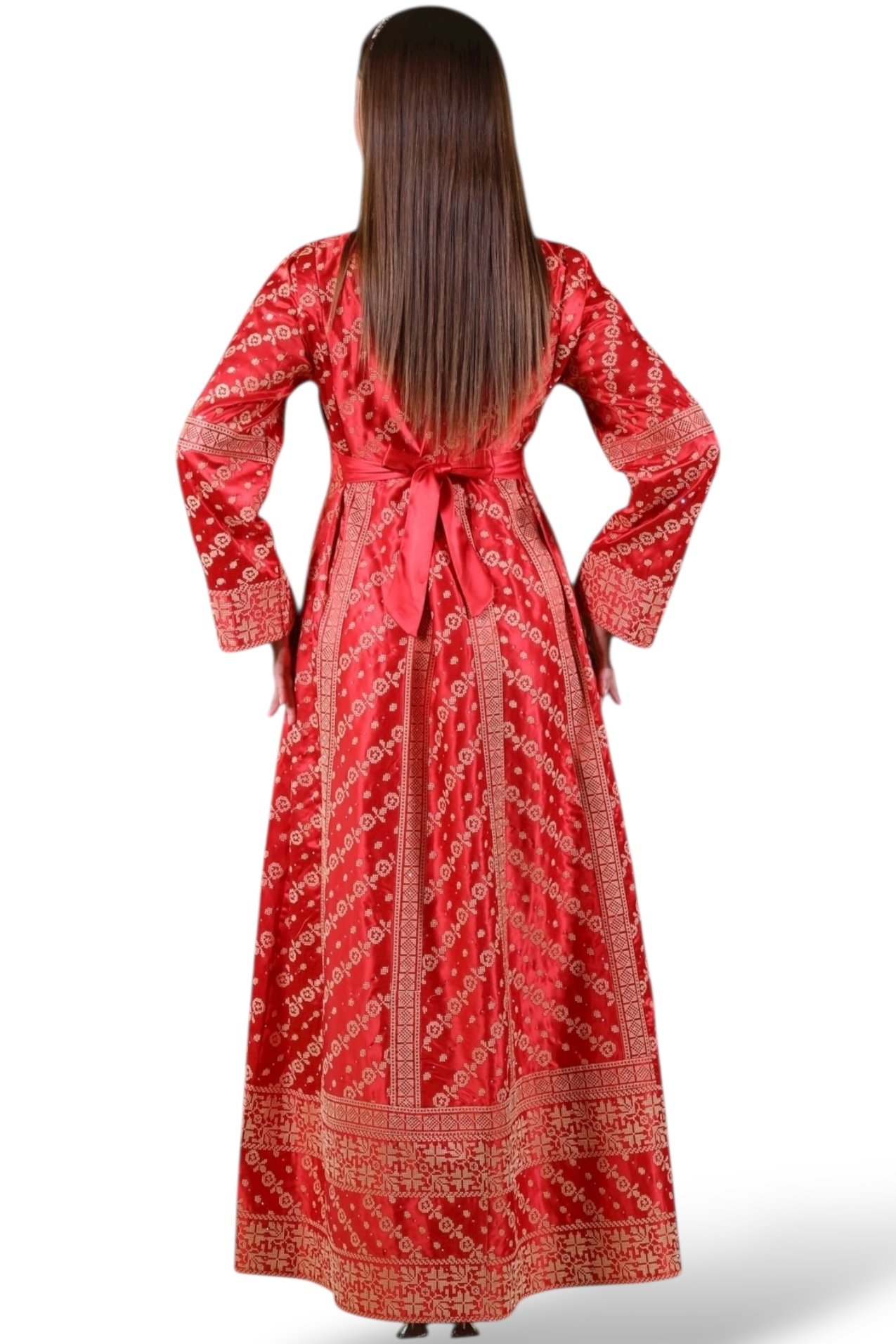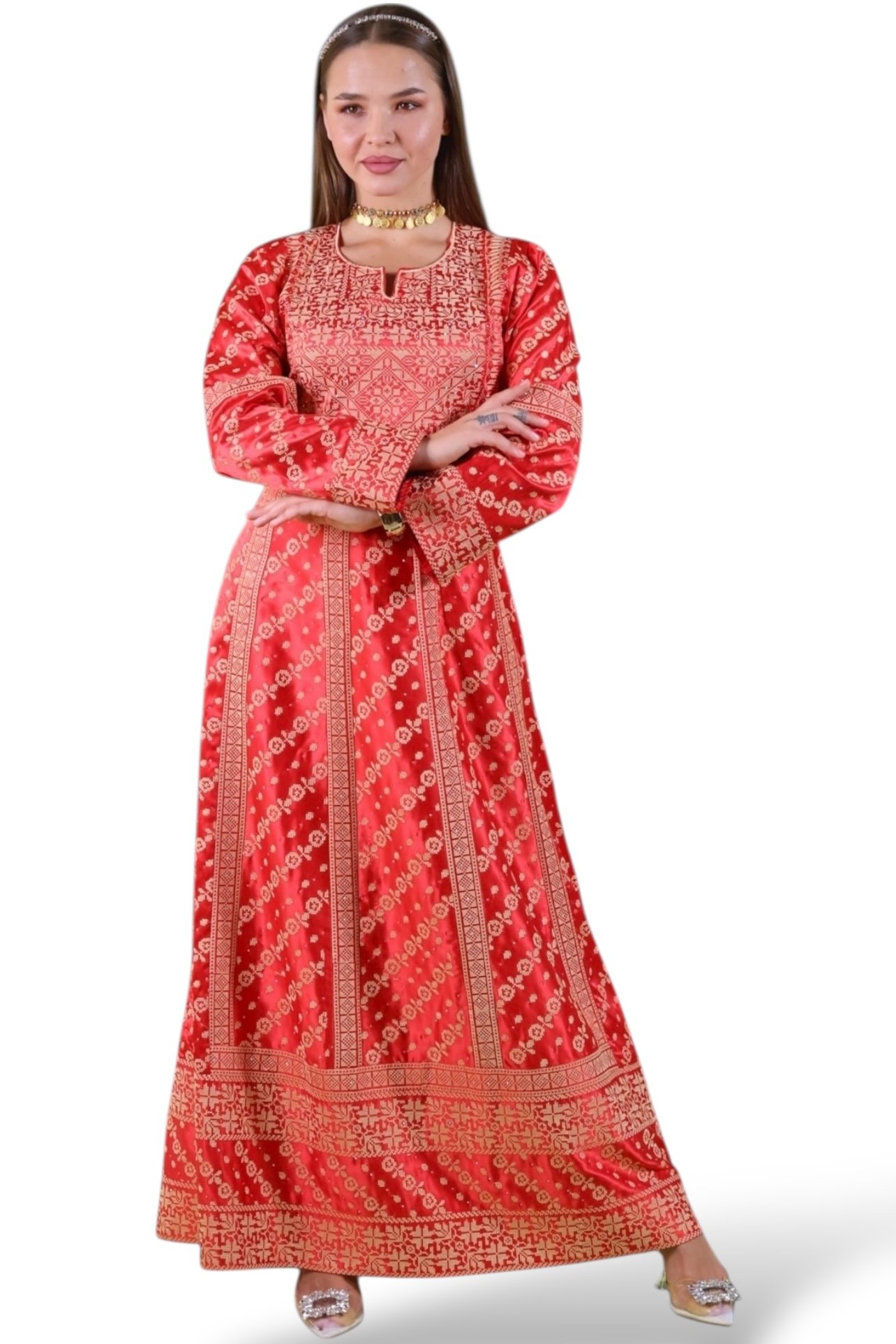• ثوب الملكة المشغول على نوعين قماش مخمل السلك والمبرد الكوري بتطريز الطارة اليدوية