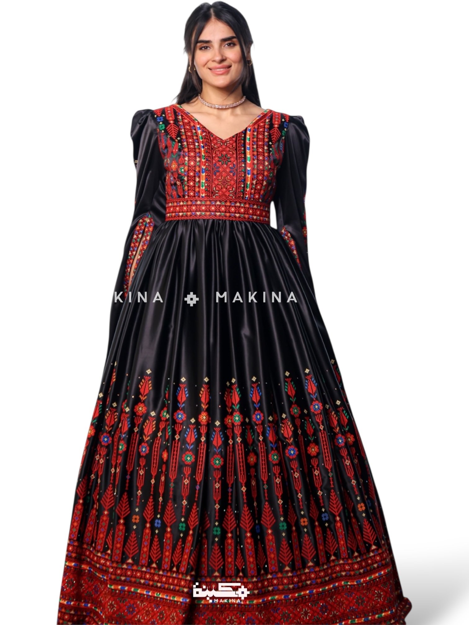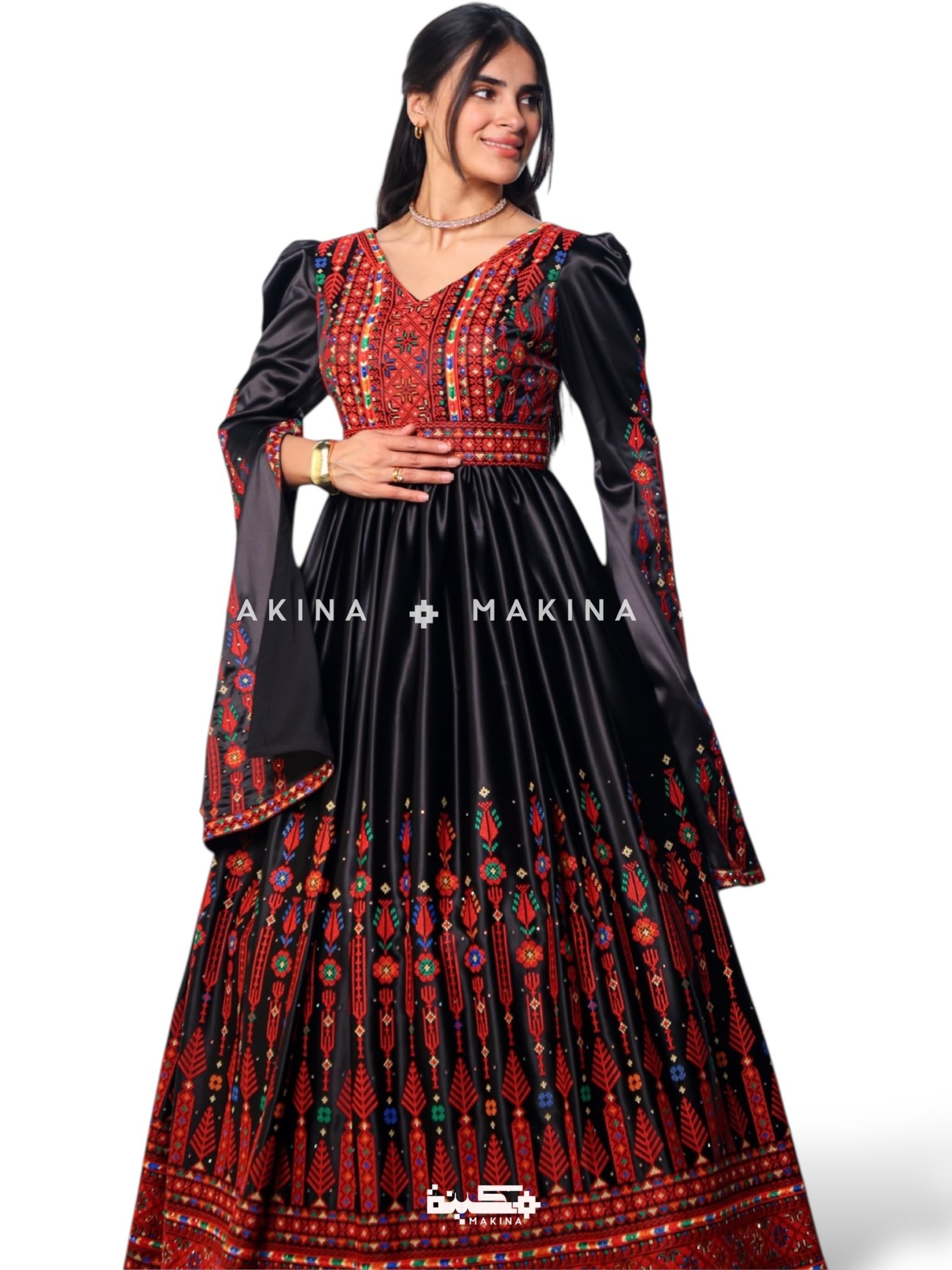 - A beautifully crafted kaftan featuring authentic old-style Fallahi embroidery, intricately done using the double eight-stitch technique — celebrating heritage through detailed, timeless craftsmanship.
