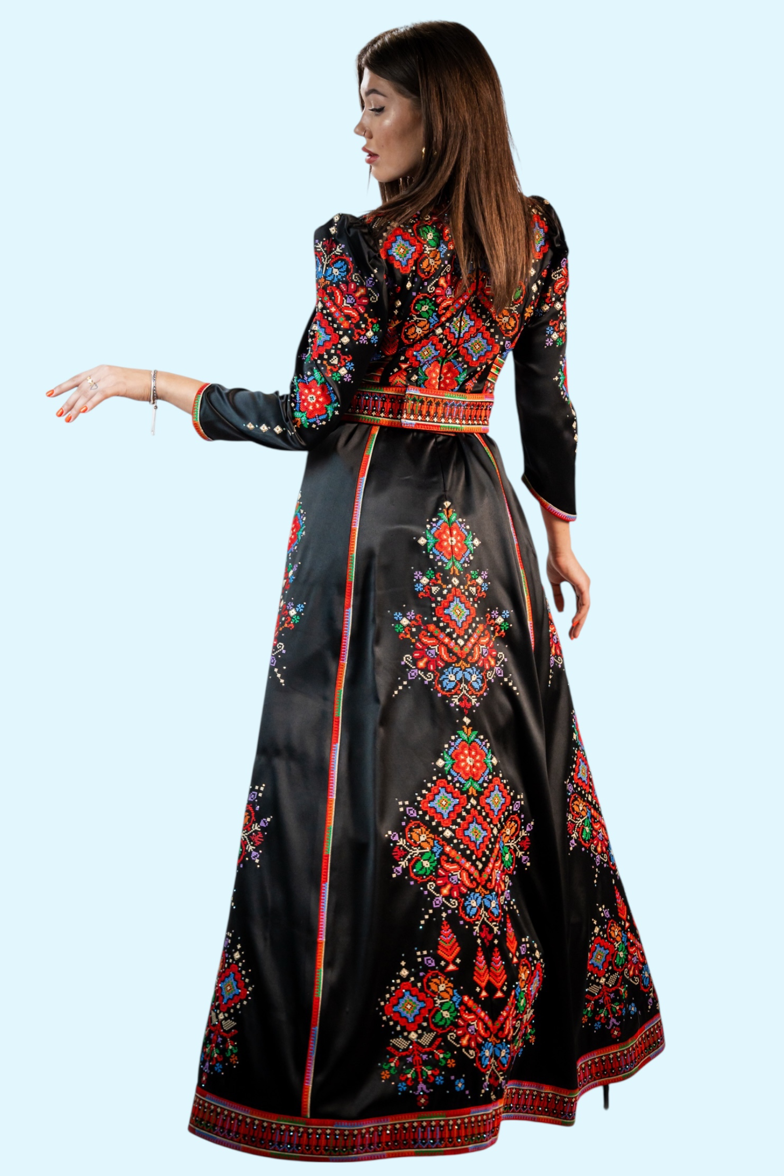 • ثوب فلاحي حديث مطرز بالتطريز الفلاحي الاردني مصنوع من قماش الروزمير