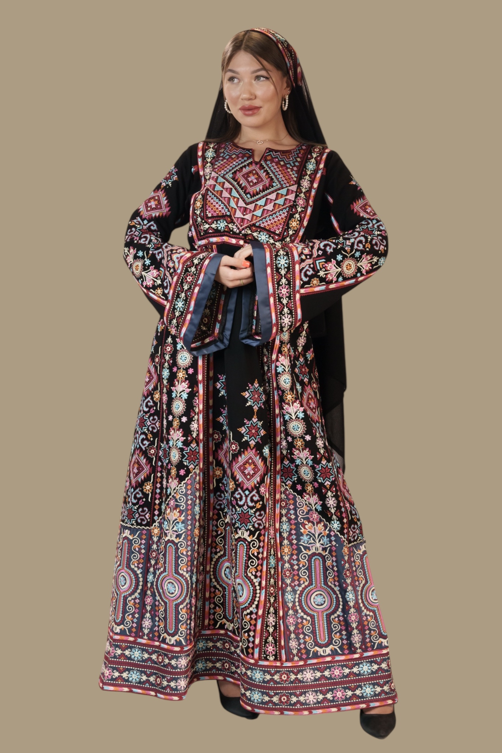 ثوب نصف طلس فلاحي مودرن كلوش مطرز بخيط دي ام سي على قماش المبرد