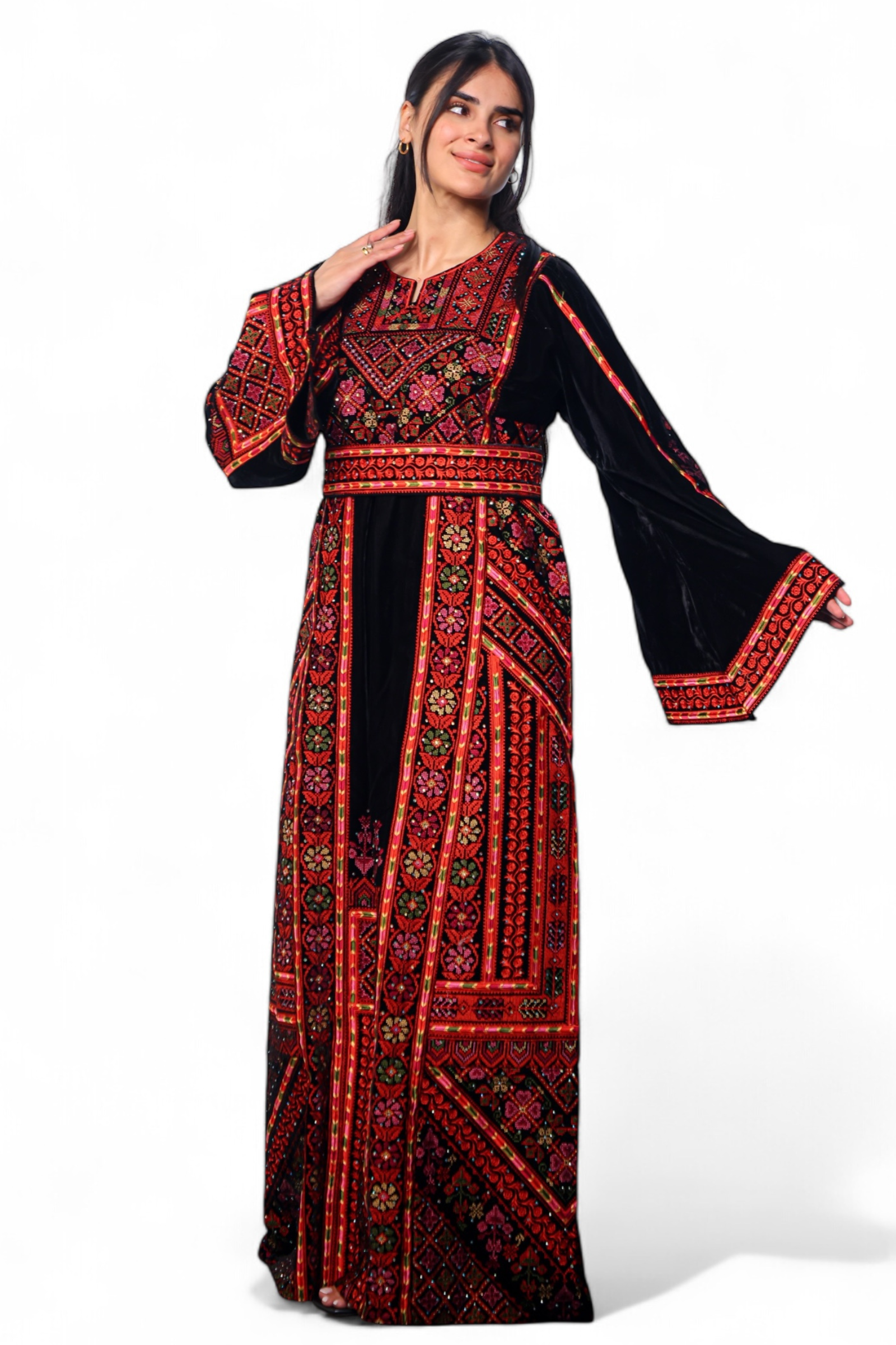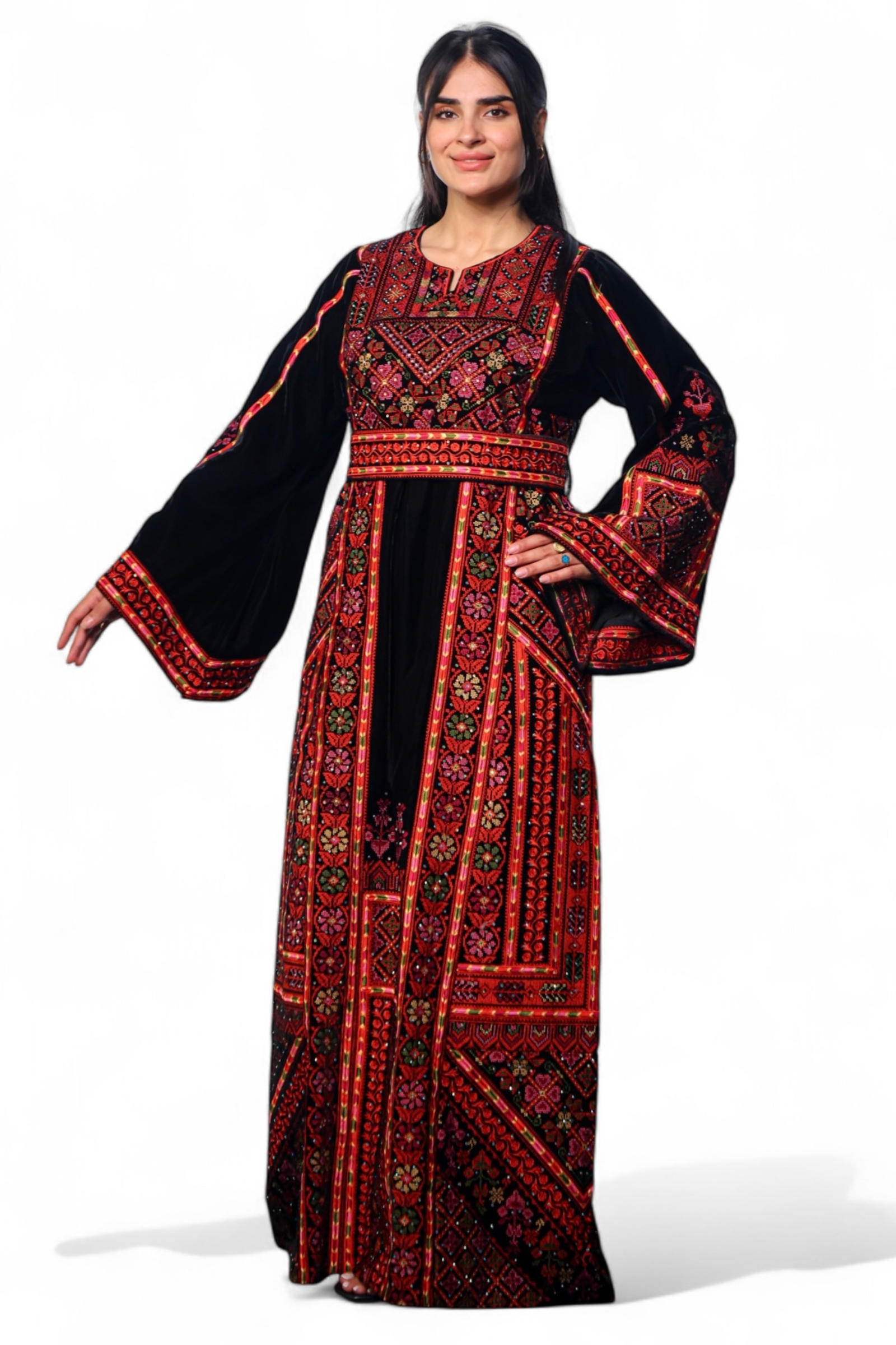 • Traditional mid-length Thobe embroidered with the eight-stitch pattern on premium Korean cooled fabric.