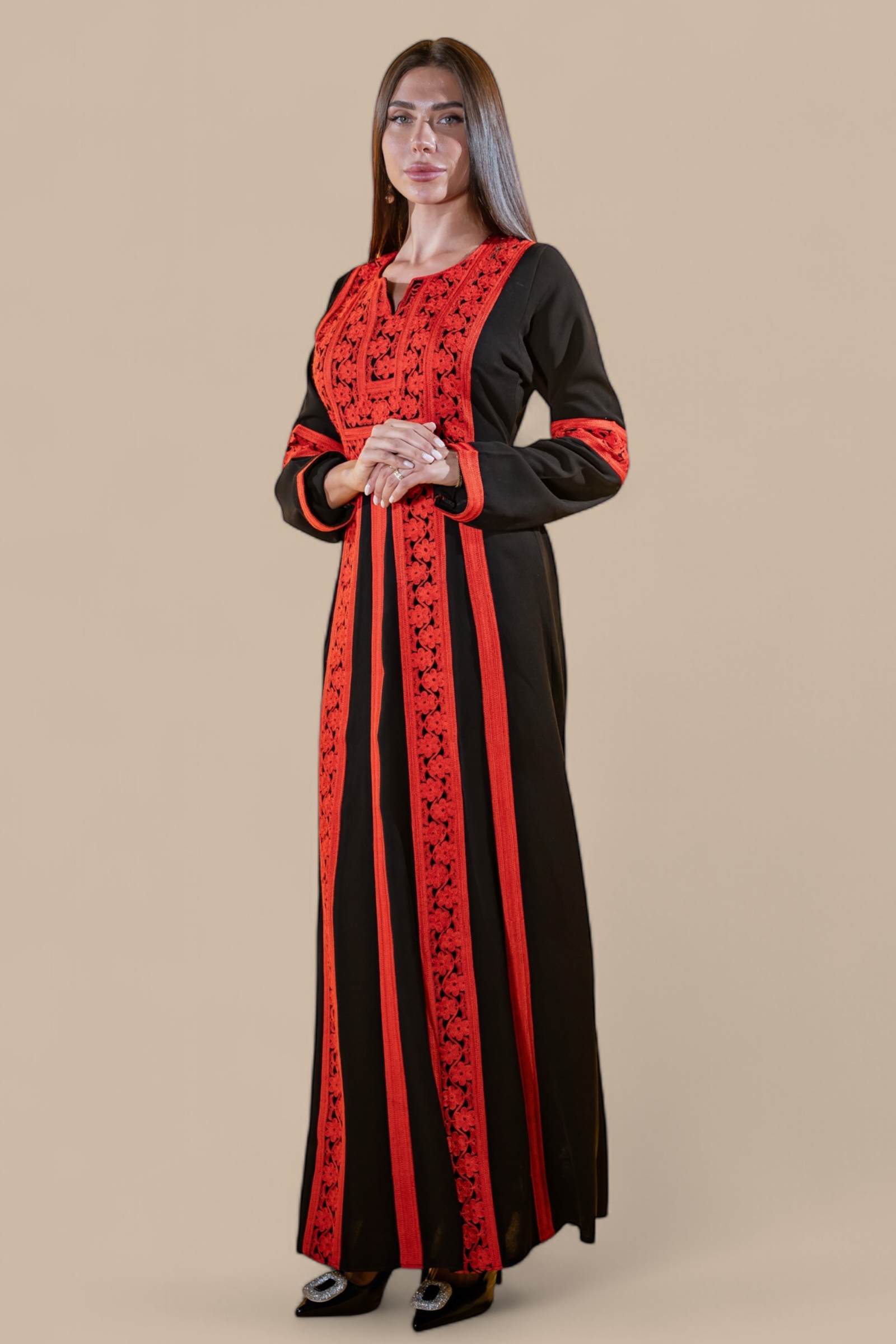 ثوب تقليدي خمس عروق مطرز تطريز فلاحي على قماش البرد الكوري