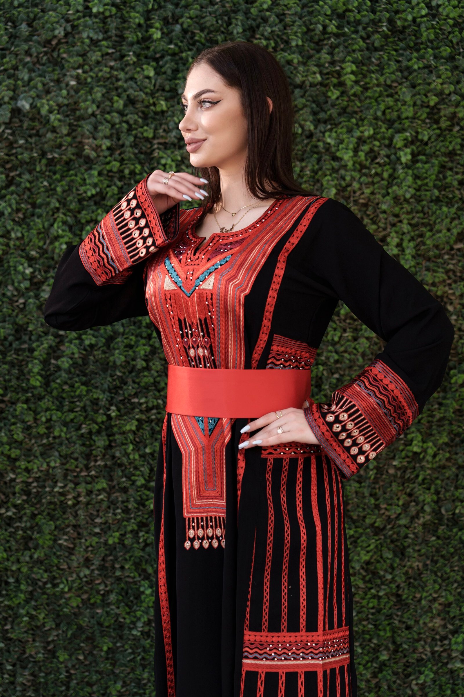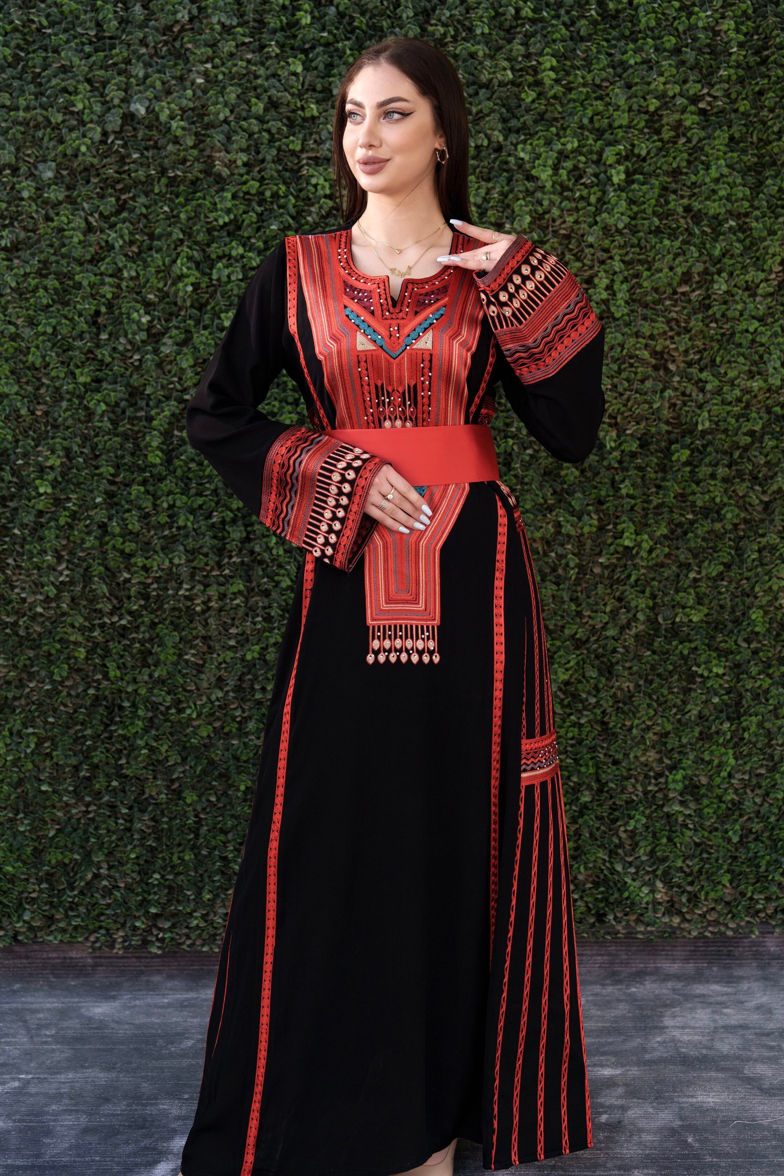 - A half-Tallas style thobe crafted from premium Korean Mabred fabric, featuring signature Fellahi embroidery with Manajel motifs. A standout piece of cultural artistry.