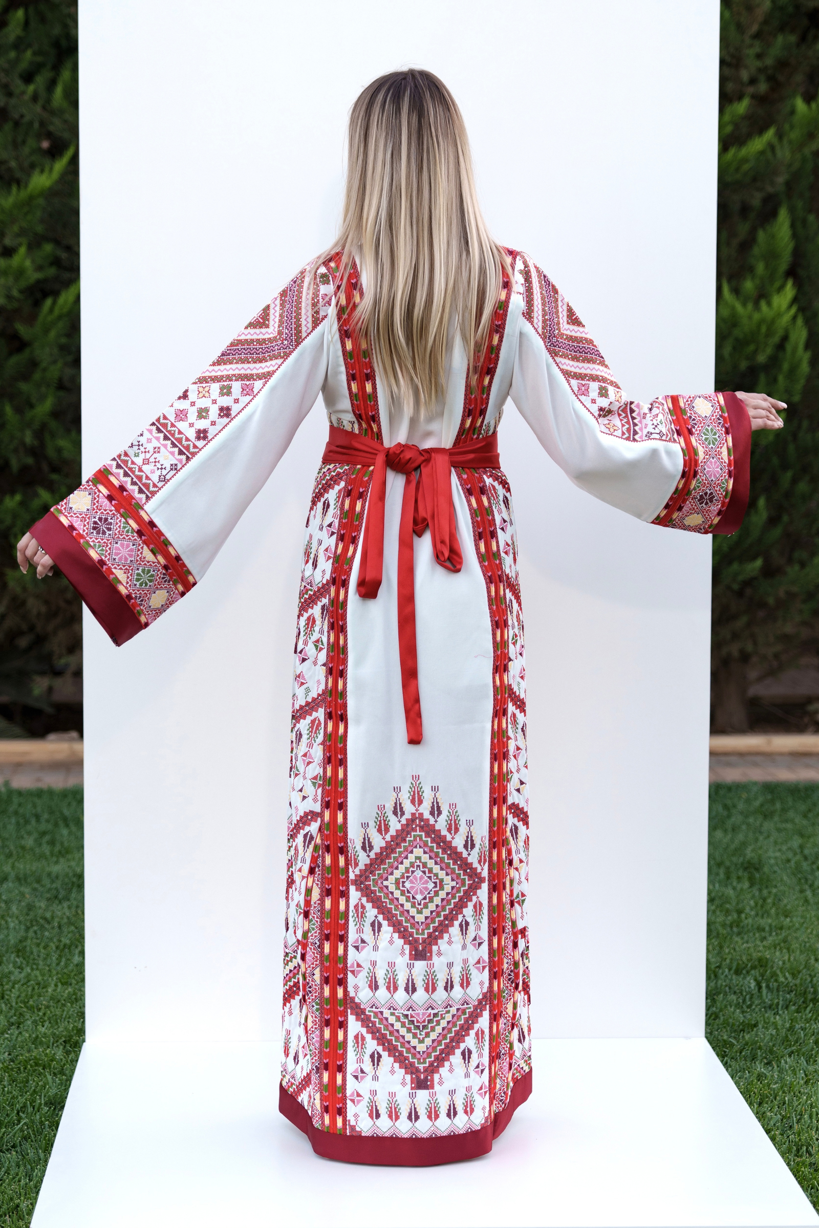 - A half-Tallas style thobe crafted from premium Korean Mabred fabric, featuring signature Fellahi embroidery with Manajel motifs. A standout piece of cultural artistry.