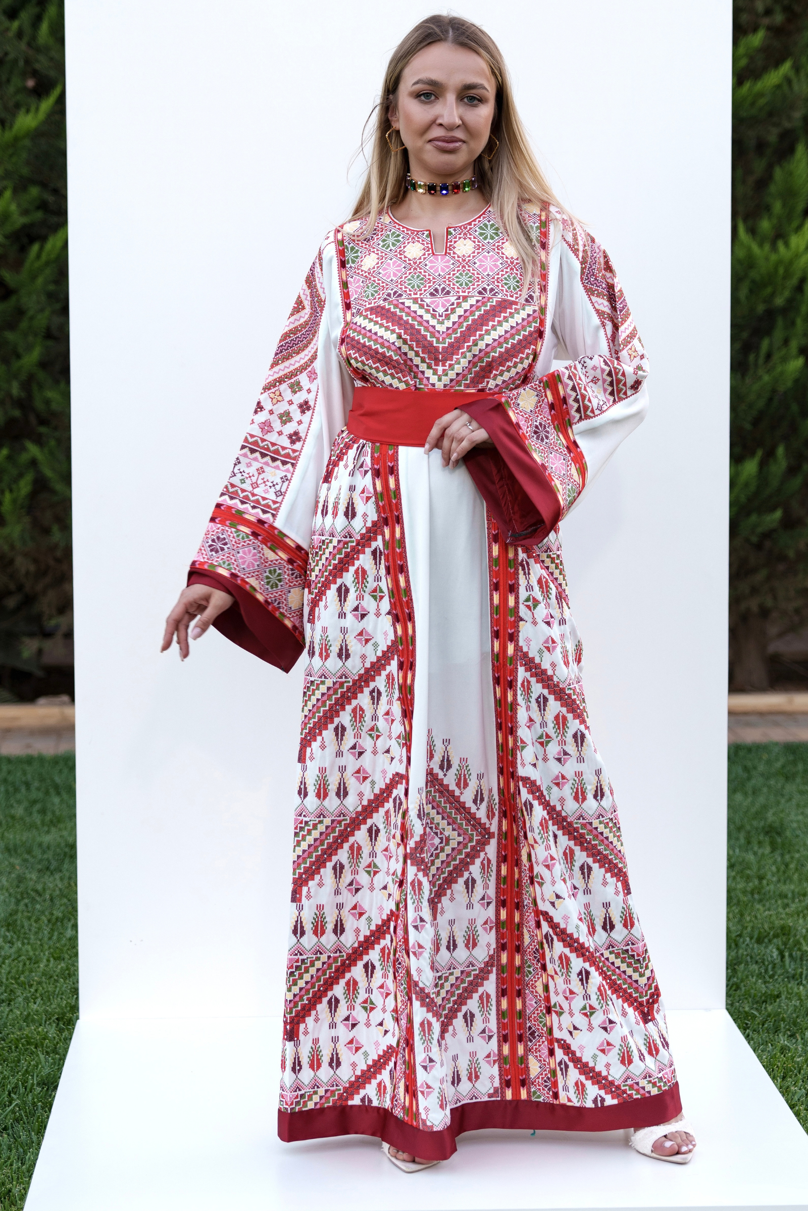 ثوب نصف طلس مصنوع من قماش المبرد الكوري و التطريز الفلاحي المميز بالمناجل
